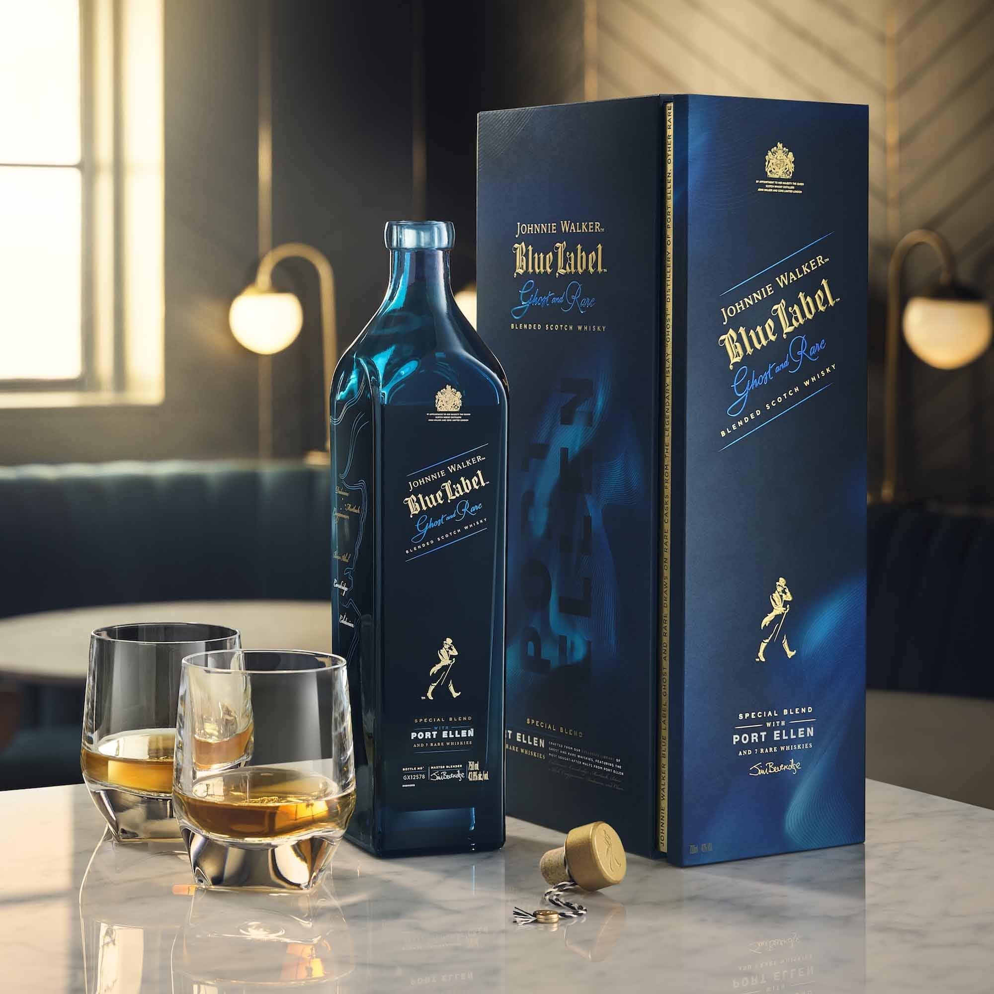 Đây là Sản phẩm cao cấp nhất của Johnnie Walker, số năm ủ rượu không được tiết lộ, dung tích chai 750ml, nồng độ 40 %. Các chuyên gia của hãng rượu Johnnie Walker đã tuyển chọn những nguyên liệu làm ra blue Johnnie Walker từ bờ biển phía tây và trên các đảo của vùng Speycide để phối trộn tạo ra Blue Label.