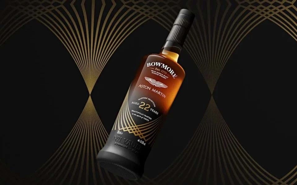 Bowmore, nhà chưng cất whisky nổi tiếng của đảo Islay đã chính thức giới thiệu loạt sản phẩm đầu tiên trong bộ sưu tập được thiết kế bởi Aston Martin và phân phối độc quyền cho thị trường miễn thuế du lịch.