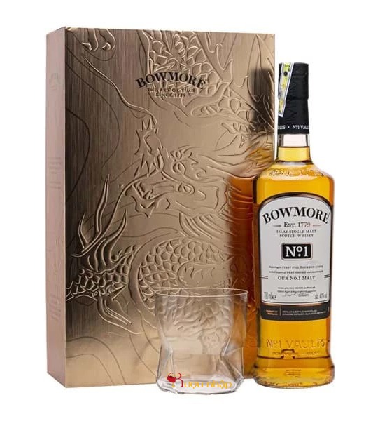 Rượu Bowmore No.1 Hộp Quà Tết 2024 – Giáp Thìn 2024 với hoa văn Rồng vàng trên hộp. Bowmore No.1 là dòng rượu Single malt khói của nhà Bowmore tọa lạc tại Islay. Bowmore No.1 hộp quà kèm ly, rượu được ủ trong thùng first-fill bourbon. Với ngoại hình mới và hương vị đặc biệt, nó là sự lựa chọn hoàn hảo cho mùa lễ Tết.