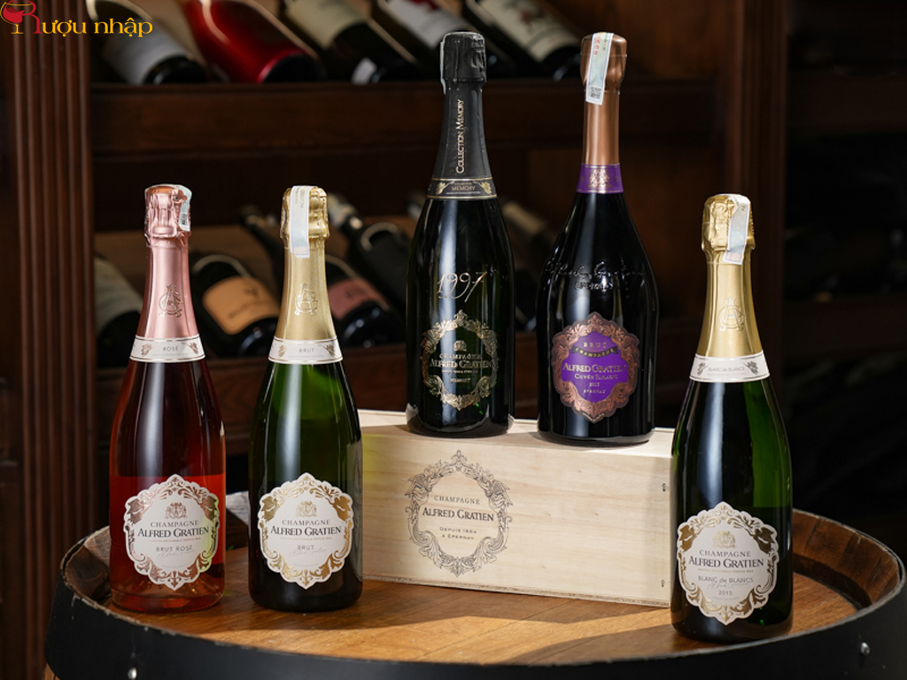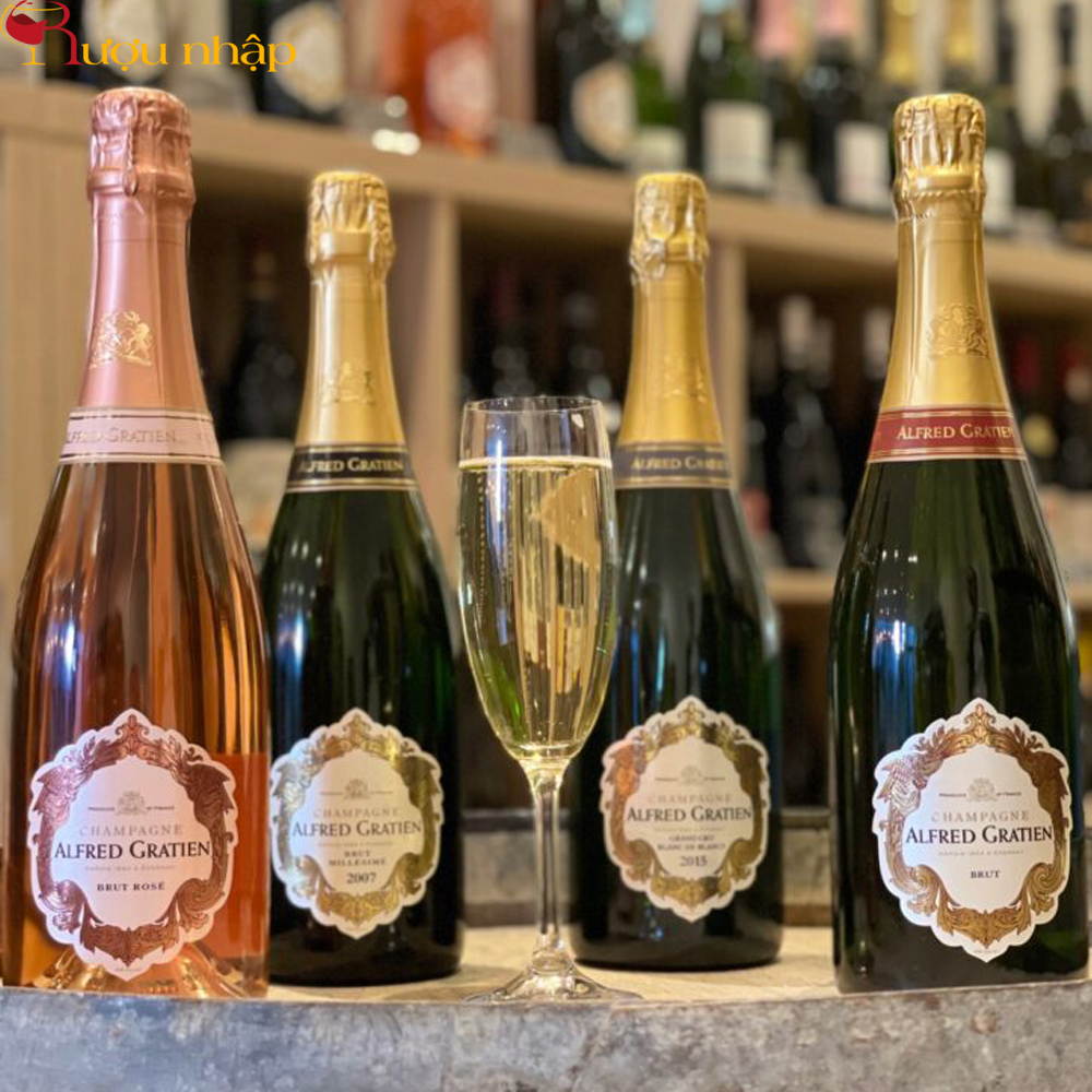 Champagne Alfred Gratien Brut là một dòng rượu vang sủi bọt tinh tế đến từ vùng Champagne, Pháp, được sản xuất theo phong cách thủ công truyền thống. Rượu được phối trộn hài hòa từ ba giống nho đặc trưng của vùng: Chardonnay, Pinot Noir và Pinot Meunier, mang đến hương vị cân bằng, thanh lịch và đầy phức hợp.
