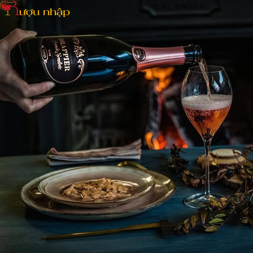 Champagne Drappier La Grande Sendree Rose lý tưởng để thưởng thức ở nhiệt độ từ 10–12°C. Bạn có thể dùng kèm với một số món ăn nhẹ, salad, hải sản hoặc trái cây tươi tráng miệng để làm nổi bật hơn hương vị đặc biệt của chai rượu. Đây chắc chắn là một lựa chọn hoàn hảo cho các buổi tiệc sang trọng, những buổi hẹn hò lãng mạn hay những dịp kỷ niệm đáng nhớ. có thể kết hợp tuyệt vời với hải sản cao cấp, món ăn nhẹ, hoặc trái cây tươi để làm nổi bật hương vị tuyệt vời mà chai rượu mang lại.