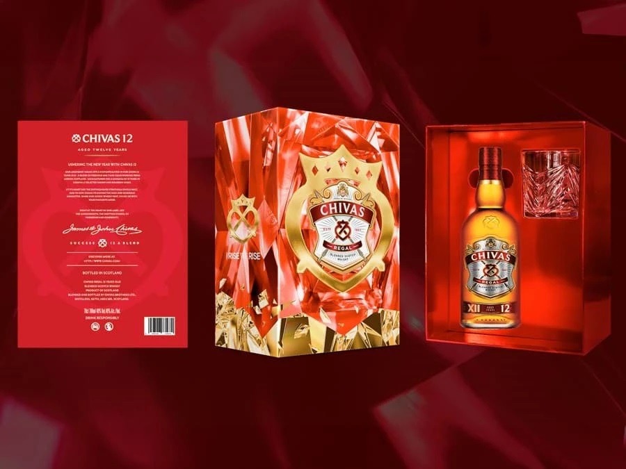 Với thiết kế hộp quà Tết tinh tế, sang trọng, Chivas 12 năm không chỉ thể hiện đẳng cấp mà còn mang đến thông điệp chúc phúc, thịnh vượng và thành công trong năm mới. Màu sắc chủ đạo của hộp quà thường mang hơi hướng đỏ hoặc vàng, biểu tượng của sự may mắn và tài lộc, phù hợp để biếu tặng người thân, bạn bè, đối tác hoặc khách hàng quan trọng.