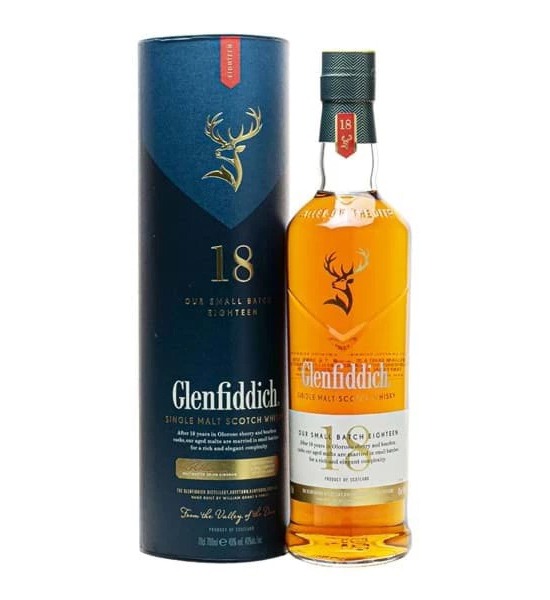 Rượu Glenfiddich 18 Năm là một trong những dòng whisky đơn mạch nha (single malt whisky) cao cấp của nhà sản xuất rượu Glenfiddich. Được ủ ít nhất 18 năm trong các thùng gỗ sồi Tây Ban Nha và thùng gỗ sồi Mỹ, loại whisky này mang đến một hương vị đậm đà, phong phú và tinh tế, thể hiện sự tận tâm và kỹ năng của những người thợ làm rượu tại Glenfiddich.