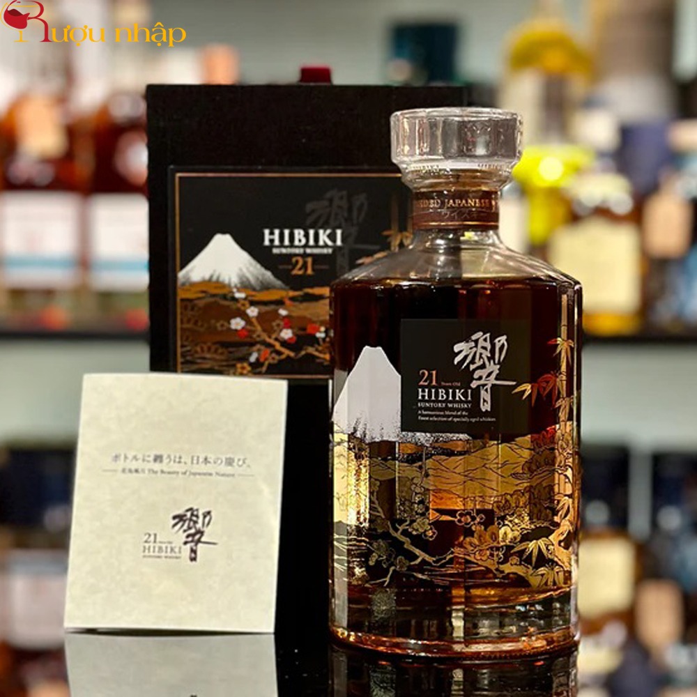 Thiết kế của chai Hibiki 21 Năm Limited Edition rất sang trọng và đẳng cấp. Mỗi chi tiết của chai rượu này đều được chăm chút tỉ mỉ, từ chất liệu thủy tinh cao cấp đến nhãn hiệu tinh tế, phản ánh sự đẳng cấp và chất lượng của sản phẩm. Bao bì của phiên bản giới hạn này cũng đặc biệt ấn tượng, thường được trang trí với các họa tiết truyền thống của Nhật Bản, làm tăng thêm giá trị và sự quý hiếm của sản phẩm.