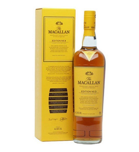 Rượu Macallan Edition No.3 là phiên bản thứ ba trong dòng sản phẩm Edition Series của nhà máy chưng cất Macallan, nổi tiếng với các loại whisky đơn mạch nha (single malt whisky) chất lượng cao từ vùng Speyside của Scotland. Phiên bản này được tạo ra với sự hợp tác đặc biệt của nhà sáng tạo nước hoa nổi tiếng Roja Dove, mang đến một trải nghiệm hương vị và mùi hương độc đáo.