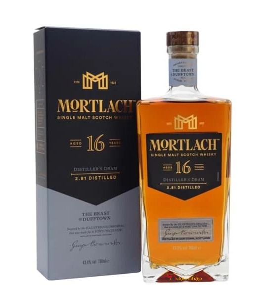Rượu Mortlach là một trong những loại whisky có tiếng trên thế giới, nổi bật với hương vị phức tạp và chất lượng tuyệt vời. Mortlach 16 năm là một trong những phiên bản đặc biệt, được ưa chuộng bởi người yêu thưởng thức whisky với độ tuổi trưởng thành. Trải qua quá trình ủ đặc biệt, Mortlach 16 năm mang đến sự cân bằng hoàn hảo giữa hương vị truyền thống và sự độc đáo.