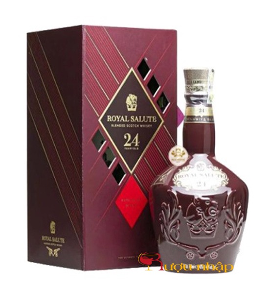 Rượu Royal Salute 24 năm (hay còn gọi là Chivas 24 sứ) là một sản phẩm cao cấp thuộc dòng Royal Salute – thương hiệu whisky hạng sang của hãng Chivas Brothers. Đây là loại rượu whisky đặc biệt, được ủ trong những thùng gỗ sồi tốt nhất trong suốt 24 năm trước khi được đóng chai.