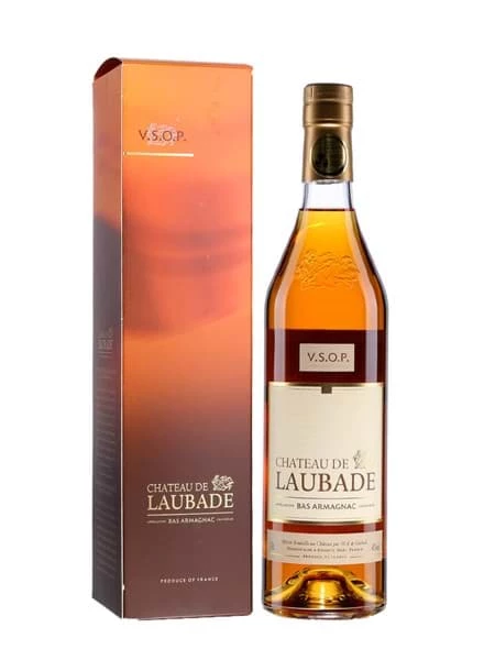 Rượu Chateau de Laubade VSOP, vùng Armagnac, Pháp. Chateau de Laubade VSOP phối trộn từ các thùng rượu được ủ 6 – 12 năm.