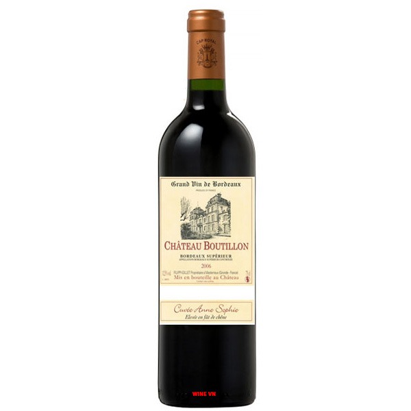 Rượu Vang Chateau Boutillon Bordeaux Superieur Cuvee Anne Sophie là một chai rượu vang bình dân của Pháp được không chỉ khách hàng nước sở tại mà còn được khách hàng toàn thế giới yêu mến bởi hương vị vô cùng tươi ngon và giá thành lại hợp với túi tiền của họ. Rượu là sự lựa chọn hàng đầu dành cho những bữa cơm đoàn viên vào dịp cuối tuần hoặc lễ tết, tuy nhiên quý vị cũng có thể sử dụng vang cho bữa ăn hàng ngày để đảm bảo sức khỏe cho các thành viên trong gia đình.
