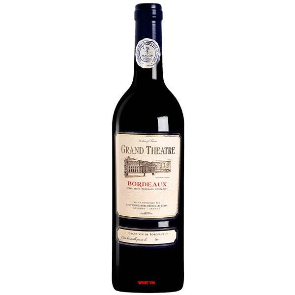 Được đánh giá là một kiệt tác nghệ thuật ẩm thực đến từ vùng Bordeaux của nước Pháp với màu sắc, hương vị vô cùng nổi bật, gây ấn tượng mạnh, Rượu Vang Grande Theatre hứa hẹn sẽ đem tới cho người thưởng thức thật nhiều cảm xúc bùng nổ mãnh liệt. Rượu có nồng độ 13% và được tạo ra từ sự hòa hợp của 3 giống nho khác nhau.