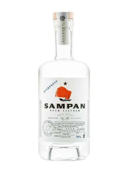 Rượu rum trắng Sampan 54% – White Rhum Vietnam, dòng rượu rum được làm từ 100% nước mía, cây mía được trồng và chưng cất tại Vietnam.